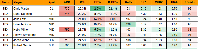 The Rangers will probably win more games than they lose this year. And somebody has to close 40-60 of those. Here’s how it breaks down on the 2025 Bullpen Data sheet: