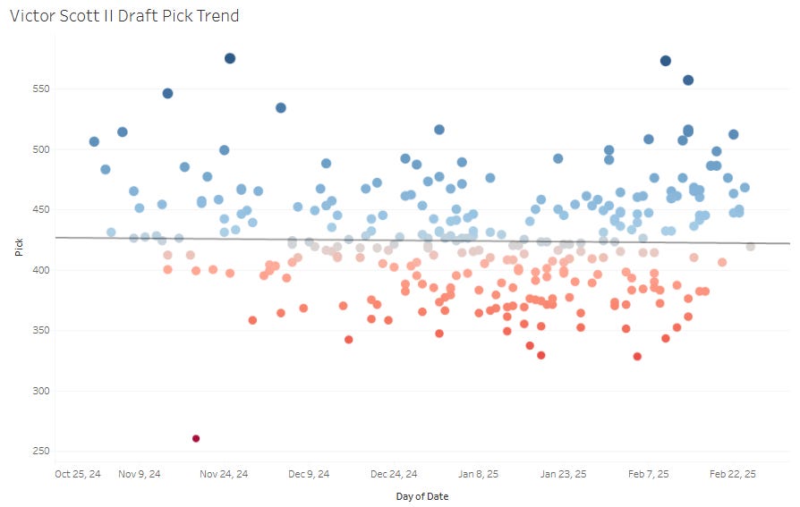One more guy to mention! How about Victor Scott II??? He’s 5/9 this spring, with a homer and two steals. The point of saying that isn’t to react to him being 5/9 with a homer and two steals, but to once again mention the fantasy upside this guy has if he can find some way to get above a .320 OBP in the Majors. I don’t think it will take a ton for the Cardinals to give him the centerfield job. They must want to see what they have in the kid, and his defense in the outfield is fantastic.