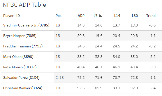 Here’s some February ADP data for the top seven first basemen.