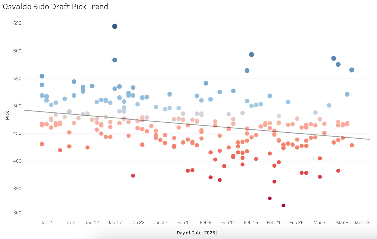 Good mix of studs and surprises there. I’ve seen Osvaldo Bido getting some hype. It’s worth checking out his pitcher profile on the main dashboard.