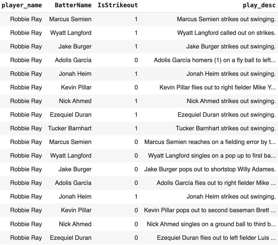 Plenty of bad hitters on the strikeout list, but Robbie Ray striking out a ton of guys is not an unexpected thing for us to see. He’s healthy and ready to rip. He has been a favorite target of mine this year because he seemed to be somewhat forgotten about a ton of last year recovering from injury and then showing us a walk problem when he did return.