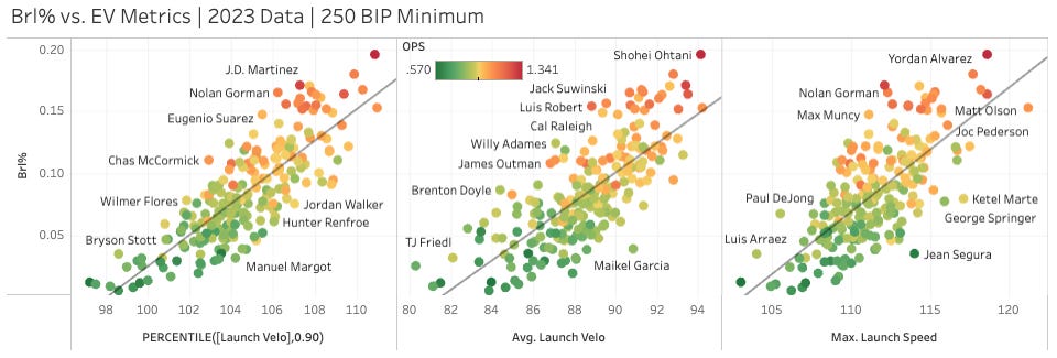 2023: 12.1% Brl%, 23% K%, 7.5% BB%, .350 xwOBA