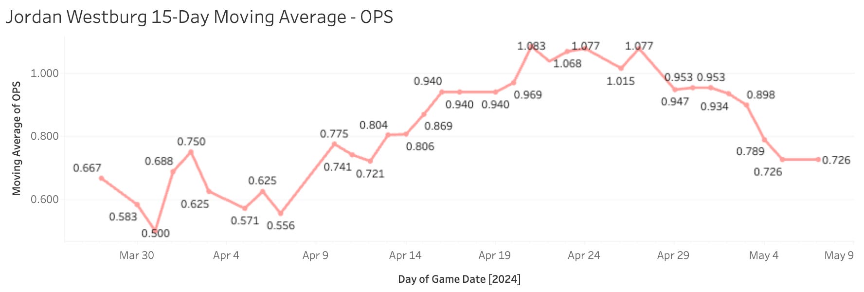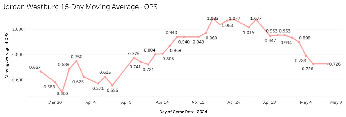 Doubling his homer output in fewer PAs, and raising the barrel rate while lowering the K% - but substantially. Westburg has arrived, and appears to be a good Major League hitter.