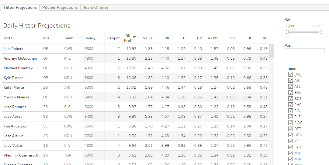 My algorithm’s pitcher and hitter rankings, updated every single day