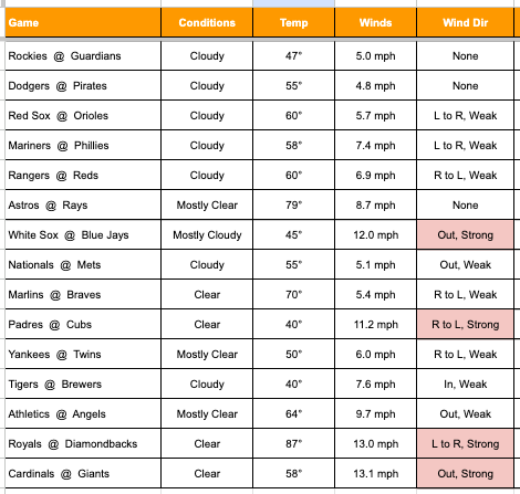 The big team standout is the Blue Jays with Springer, Guerrero Jr., and Bichette all being in the top ten in raw projections. The Mets are up against Josiah Gray as well, so that’s certainly a good spot to pay up for.