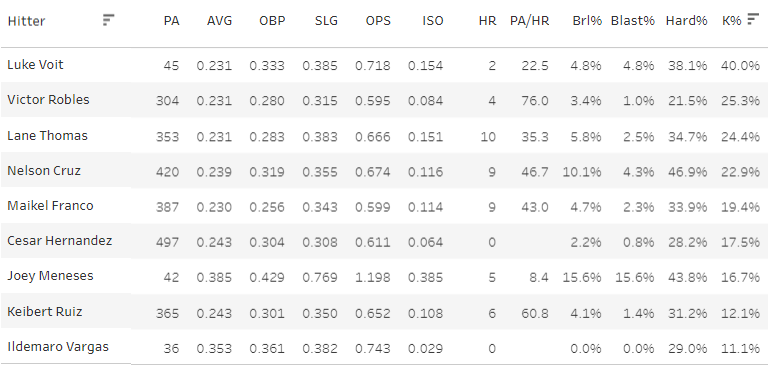 Wisdom and Reyes are the most interesting given their immense homer upside. Hoerner, Suzuki, and Happ are competent hitters but the price tags are right there probably above where they should even be, and I don’t think we can pay $5700 for Contreras.