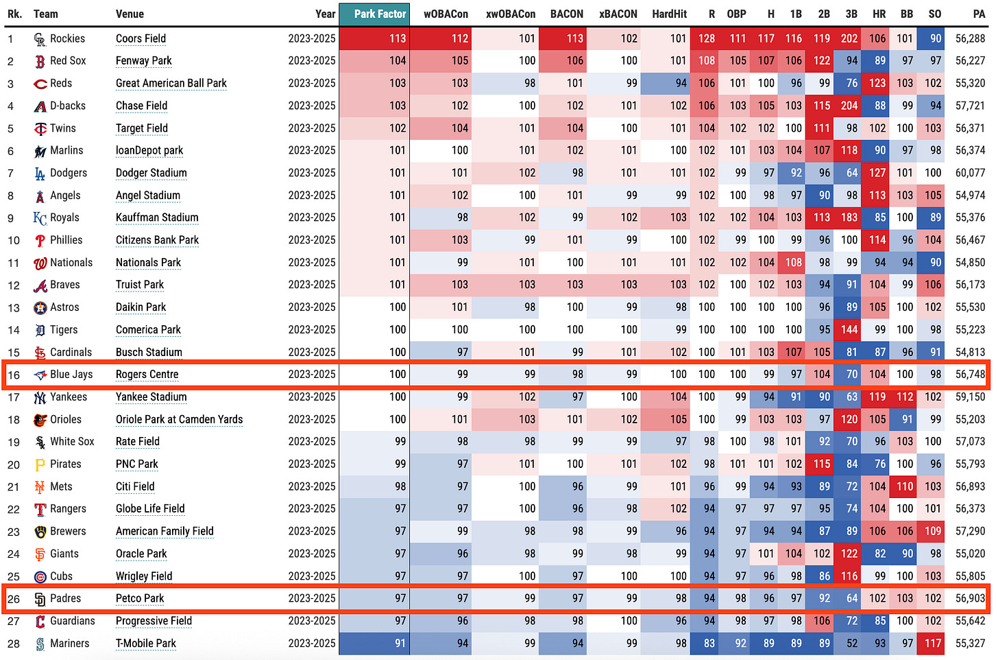 But honestly, park factors kinda suck. They seem to change every year, which makes no sense. I don’t think these sites are doing it right (if there’s a right way to do it). Point being, I don’t care much about a three-point move. It only matters at the extremes, in my opinion.