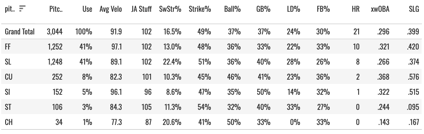 I’ve written on Cease a few other places already this offseason. But in case you’ve forgotten, the guy had an awesome strikeout rate and a K-BB% over 20%. His 16.5% SwStr% was elite, and the walk stuff wasn’t out of control by any means. But he ended up with a 4.55 ERA.