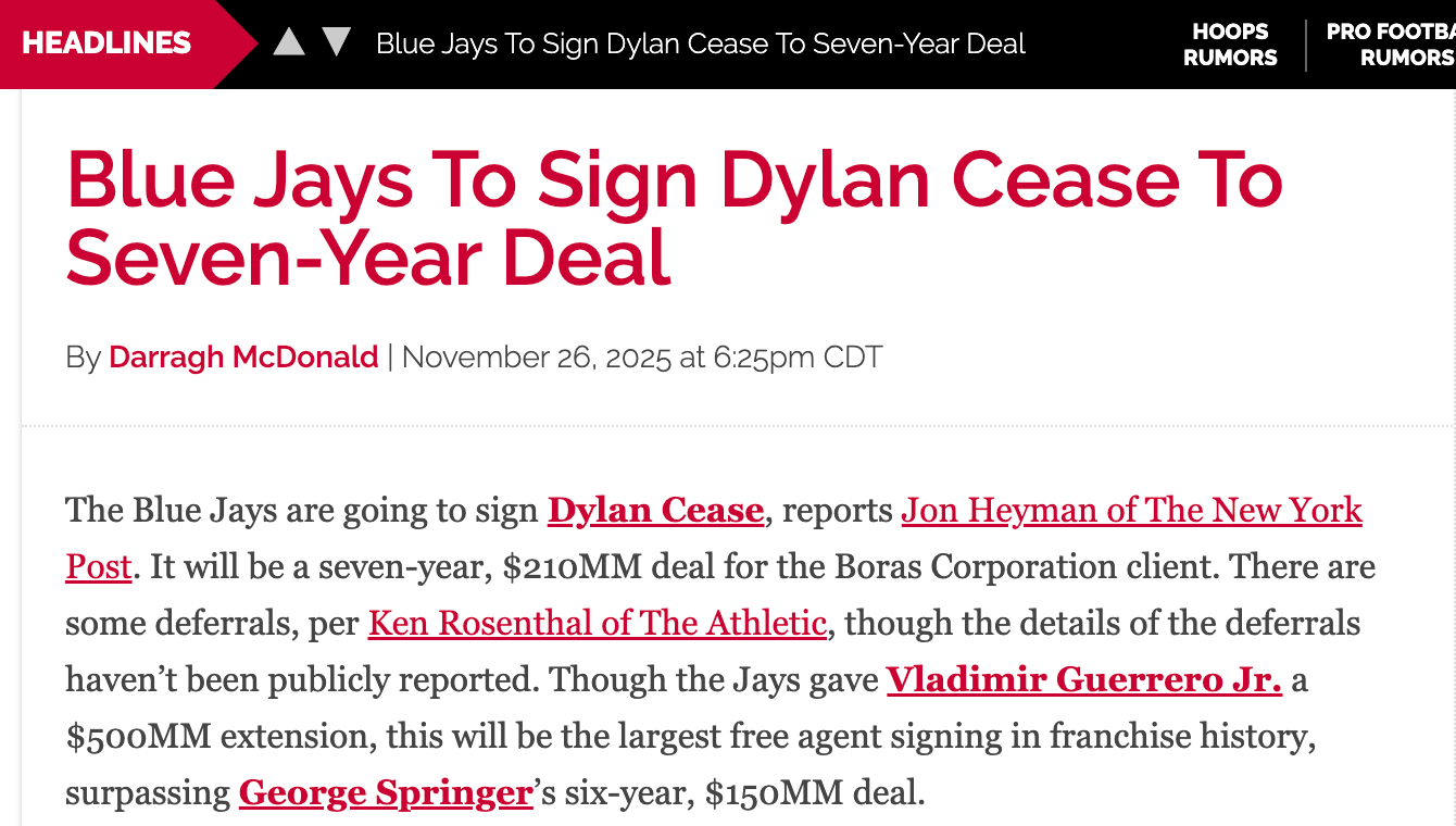 Gotta love a good crowd source. There are deferrals on the deal, which makes a big difference in the long-term finances for the team. So, as is often the case, the headline makes you stutter for a second, but really, it wasn’t an awful deal whatsoever by the Blue Jays.