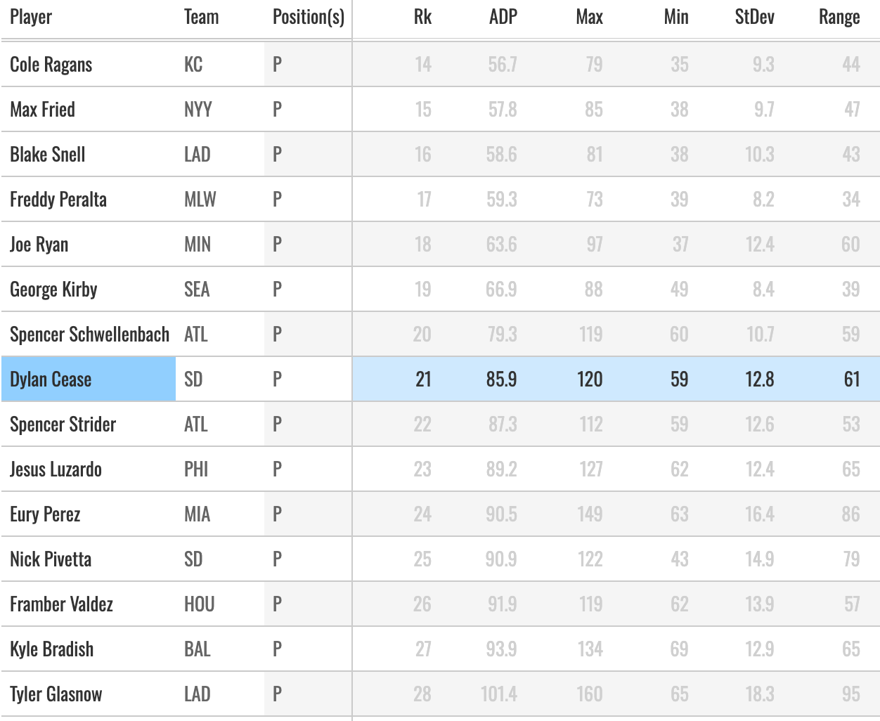 Fantasy wise, you’ll have to pay an SP2 or SP3 price for Cease this year. He’s the SP20 in early ADP.
