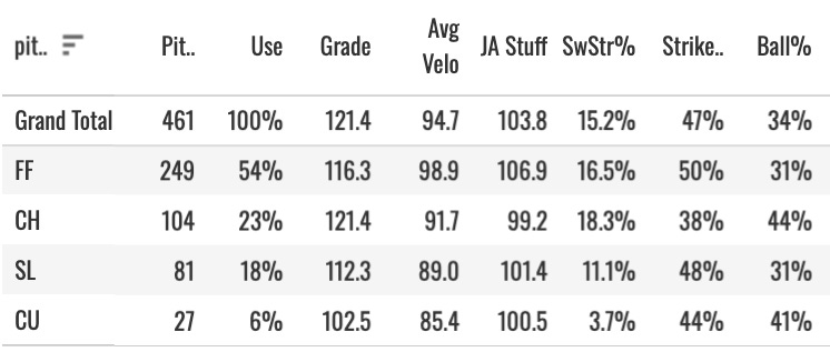 It’s just a 461 pitch MLB sample on Chandler, so the brakes must be pumped. But not a lot of guys have a fastball this good. And the early signs about his command at the big league level were elite (34.5% Ball%, 3.2% BB%).