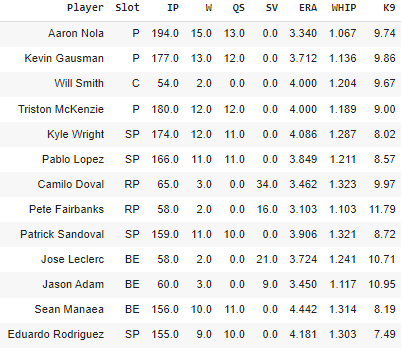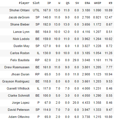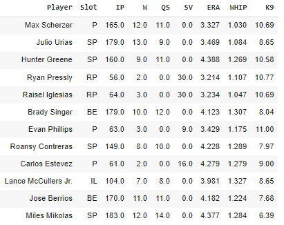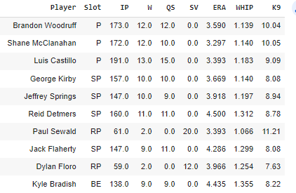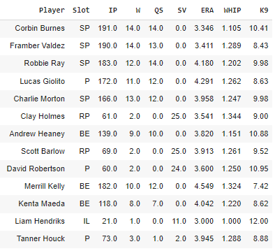 The good news is that the weak back half is made up of names with definite upside. I could see any one of Detmers/Flaherty/Bradish turning into a very strong pitcher this year, so I do like those picks for what they’re worth. You can see what happens early on and then ditch them for the next best thing.
