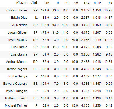 I like Heaney, Kelly, and Maeda for what they are - but I definitely would’ve liked to see Lee get into SP a little more heavily earlier in the draft. Maybe a trade is an order here.