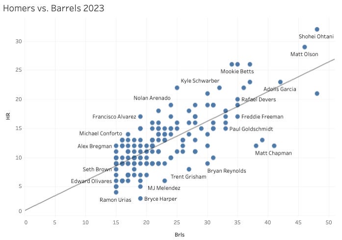 He started the year on an insane run of barrels, but he couldn’t turn them into homers. The barrel rate has stayed high, but he’s stuck on my 12 homers.