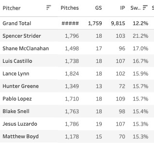 Only 9 pitchers have a dozen starts and a 15%+ SwStr%, and Lynn is one of them. The numbers are god awful still, but it’s hard for me to see him having a bad second half if he’s getting this many whiffs.