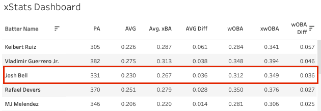 This is more for very deeper leagues, but Bell hasn’t been very good for fantasy in quite some time. However, he’s under-performed majorly this year with a .312 wOBA but a .349 xwOBA. You can probably scoop him up off of free agency, and he could hit well enough to be worthy of a starter role in deeper leagues.