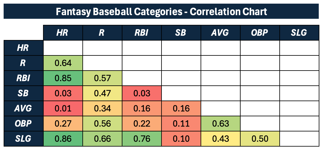 Stolen bases are the most unique category in the fantasy game. They’re not correlated with any other category. There’s a slight correlation with runs, but it’s pretty weak.