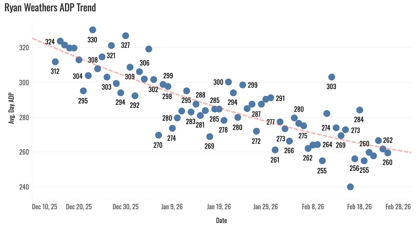 I did find out the other day that spring velocity gains aren’t super sticky. It’s basically a 50/50 shot about if the SP will maintain their increased velocity. But that percentage does come up when you’re talking about huge gains like this (+2.2mph in this case, albeit on just one outing). If we see Imanaga ripping off 93 again the next couple of spring outings, I’d be moving him up the board a little bit. A 93mph is significantly different than a 90mph thing, and we already liked him a bit for THE WHIP STRAT.
