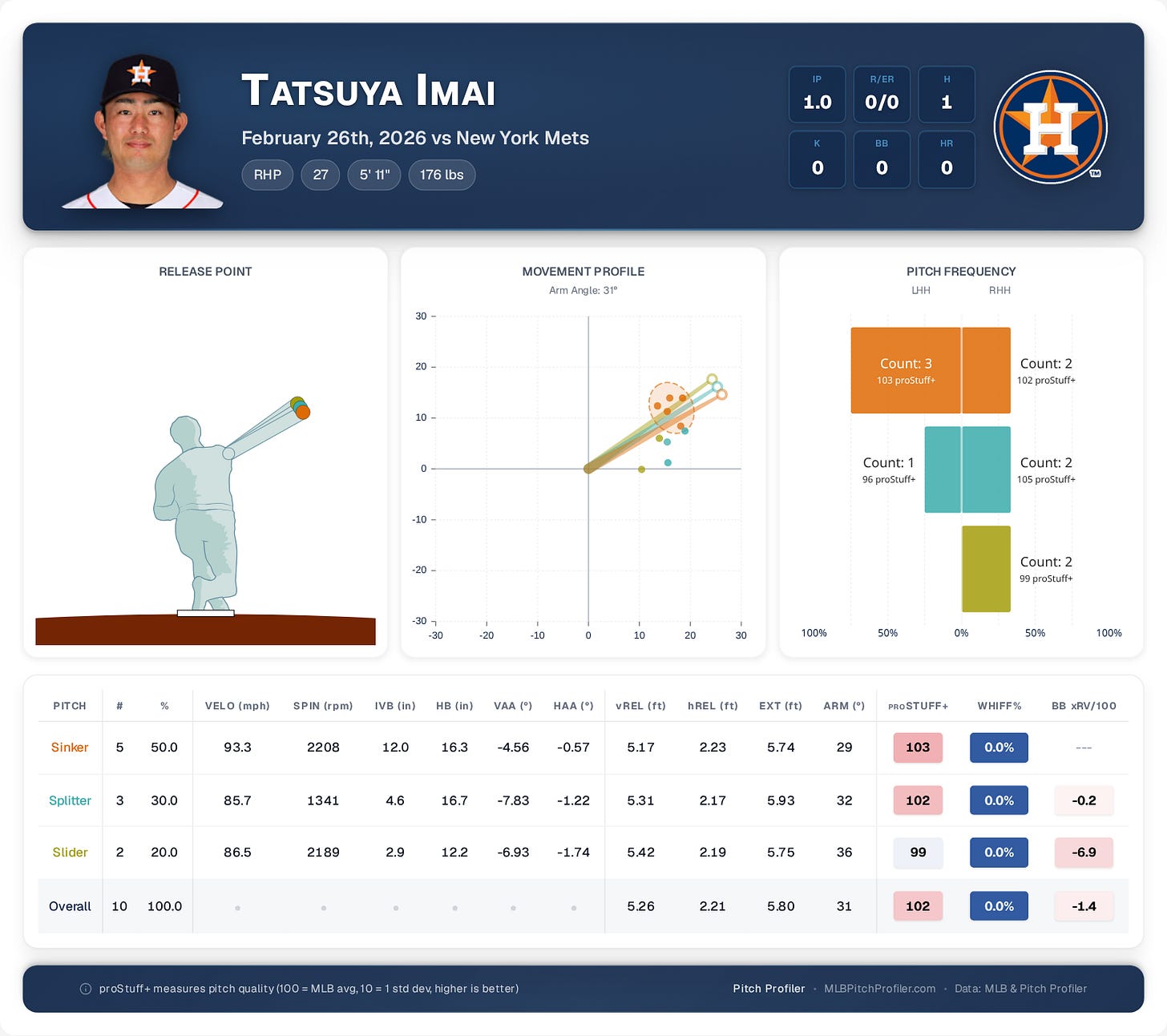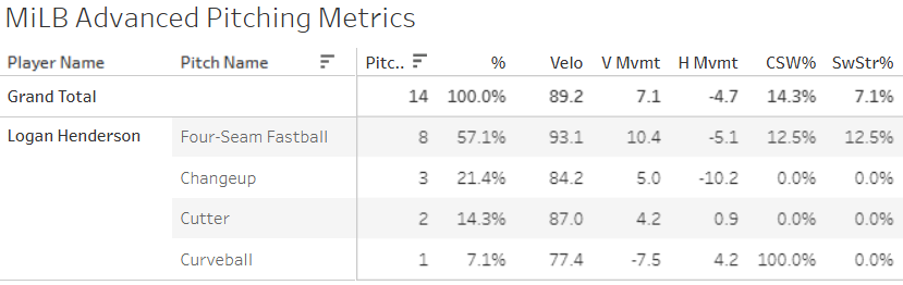 So a 93.3mph sinker, a splitter, and a slider. It looks like he’ll be sinkers + splitters only to lefties. He didn’t get a single whiff on his splitter, so he’s totally cooked obviously.