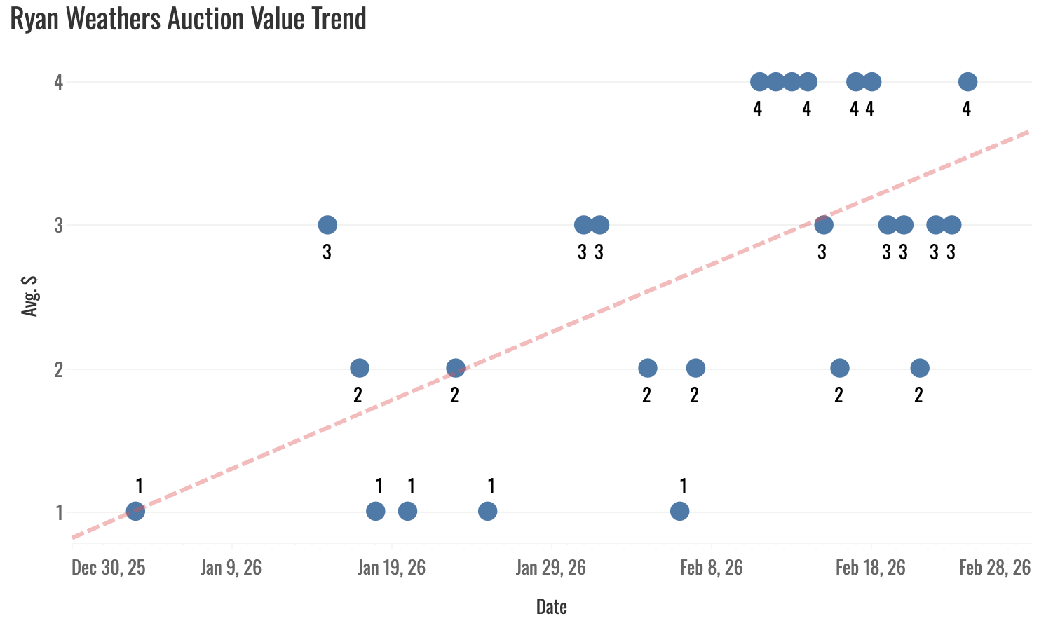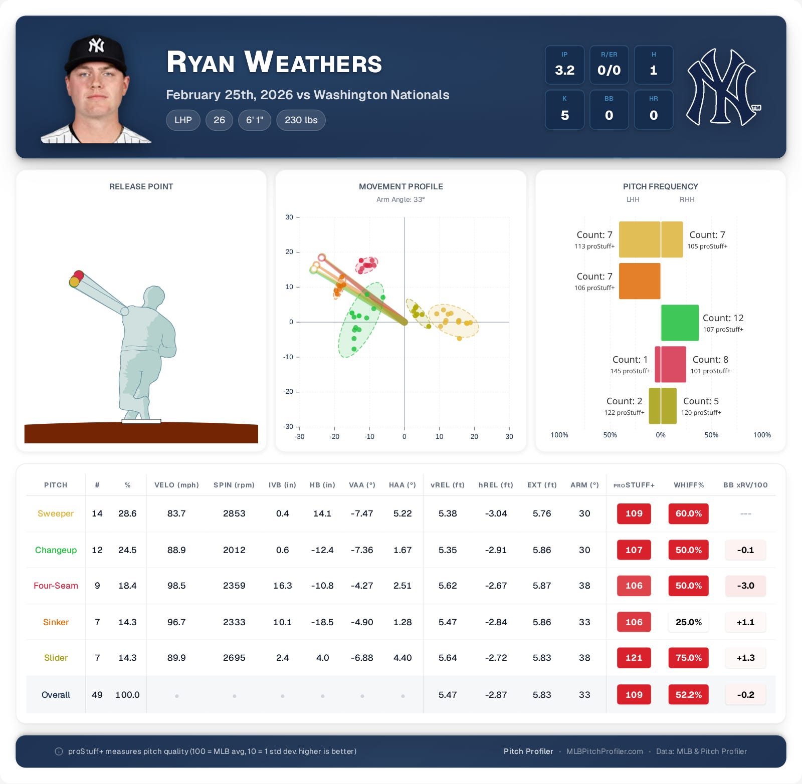 Weathers came out ripping in his spring debut with a bunch of red everywhere on five different pitches.