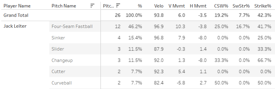 Leiter’s issue is mostly command, and introducing a cutter won’t necessarily help that. But it’s always interesting to see a dude throwing three different fastball variations. I’ve always been a fan of that. So keep an eye on Leiter’s pitch mix.