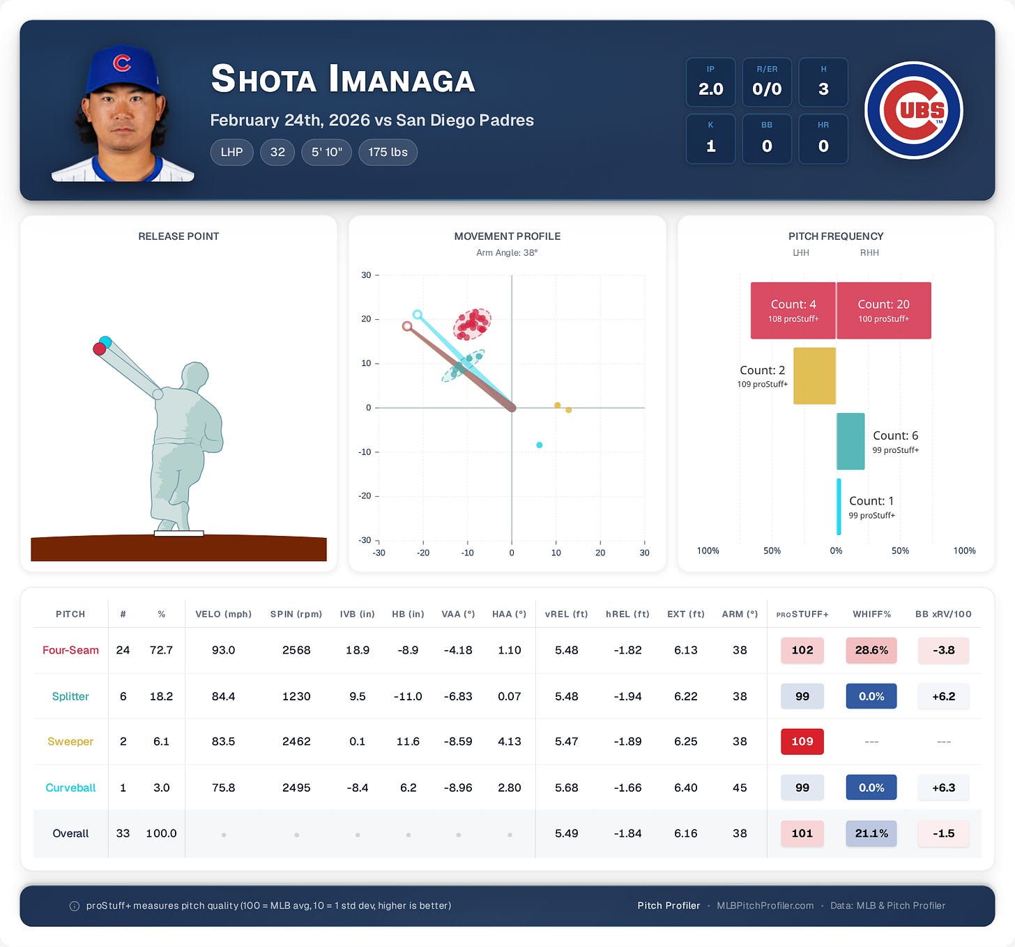 His fastball velo was up in his first spring training appearance. And they say the SHAPE was improved as well.
