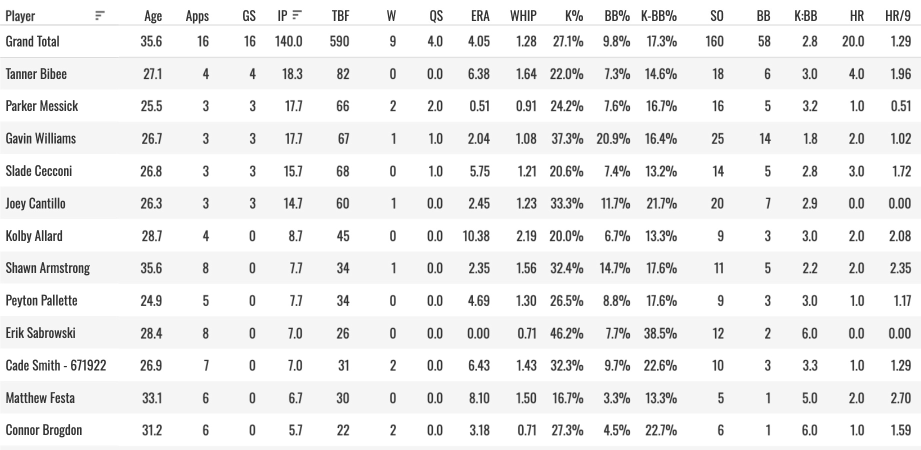 Nothing really to mention here, it’s all Cade Smith, don’t worry about the fact that he only has three of the five saves so far.