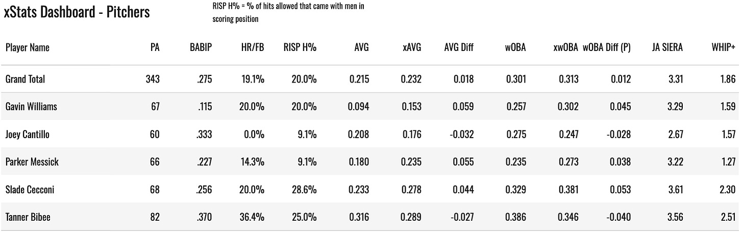 He’s been giving up runs since the jump in spring training. Some bad luck with a .370 BABIP. The underlying stuff hasn’t been awful, but his fastball continues to get slugger. It’s good to see the cutter usage right there with it, but that pitch has also been whalloped.