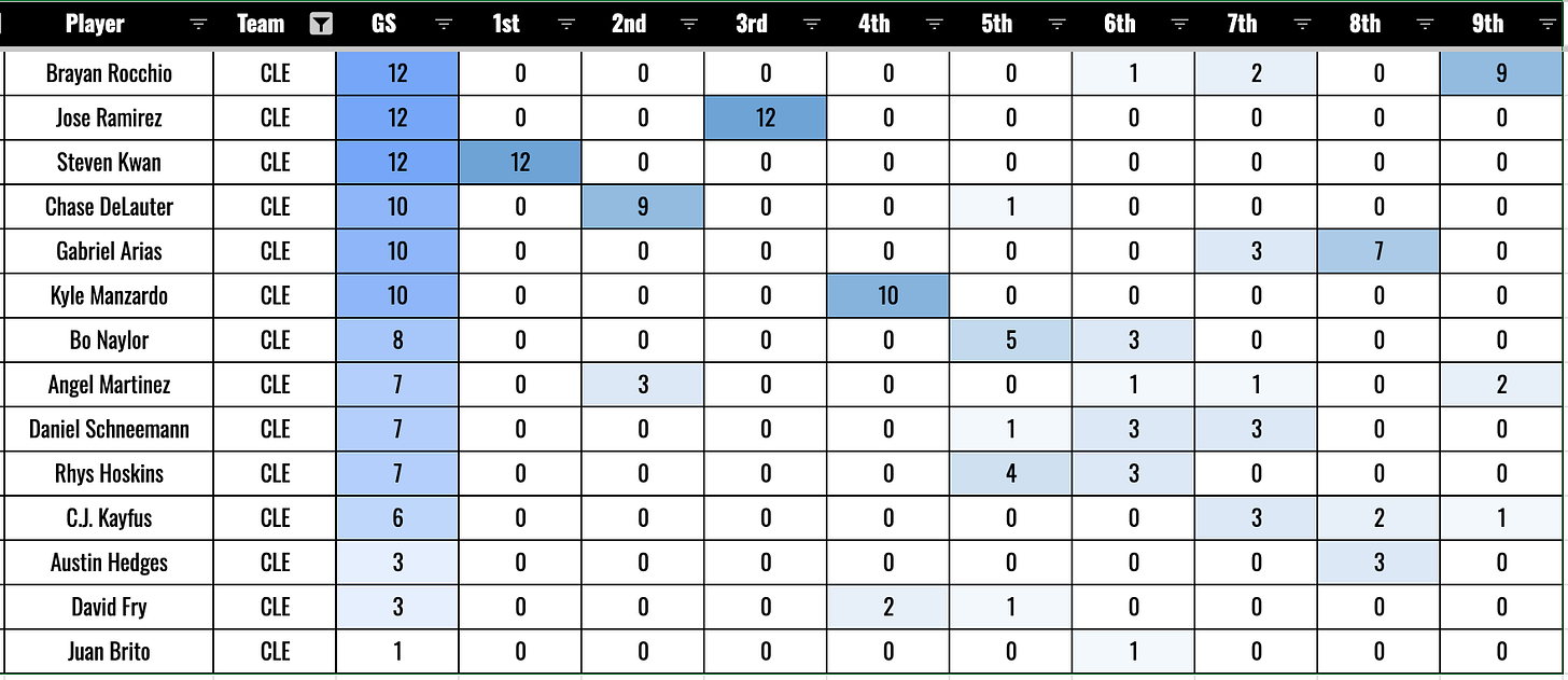 The top four have been pretty steady. They came right out with Chase DeLauter hitting 2nd, and that’s mostly where he’s been.