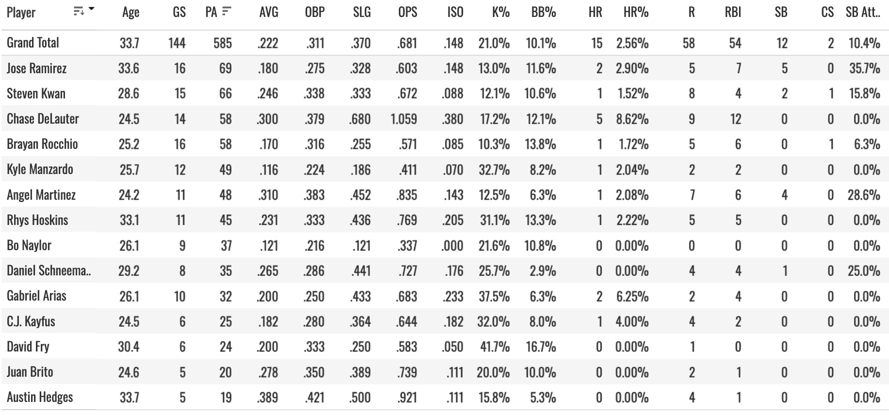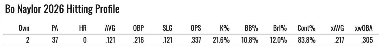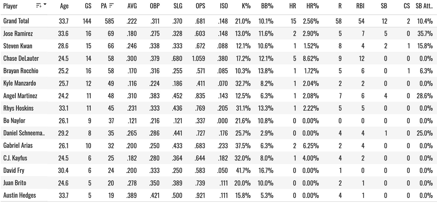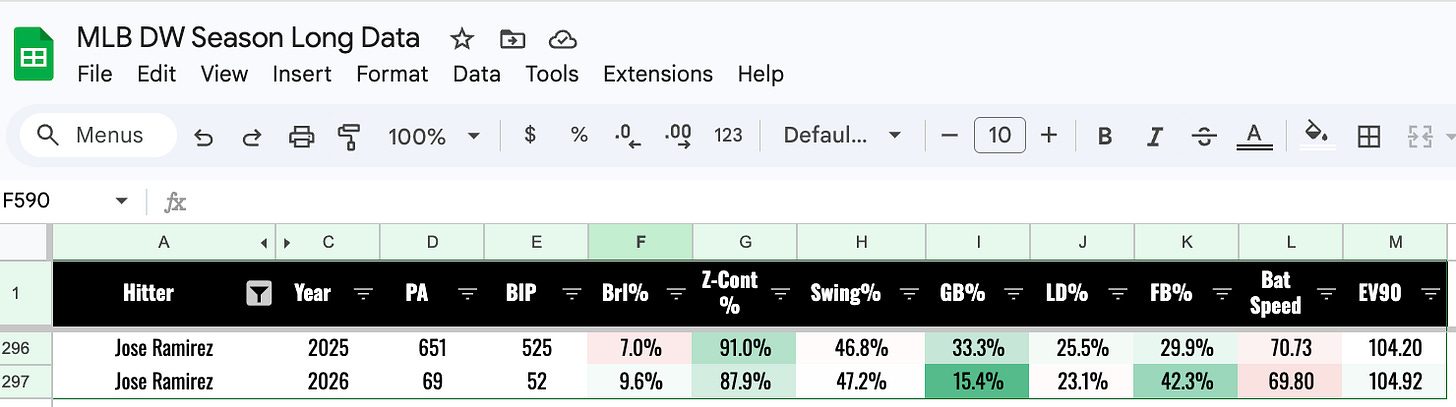 Things will improve once Jose Ramirez gets going. There’s no reason to worry about him. Brl% is up, contact still very high, still hitting a bunch of fly balls.