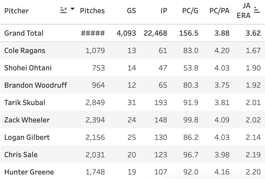 I’d say it’s less likely that he rips off 90+ pitches, at least compared to the other top guys. Ohtani is in there as a hitter, and is obviously hugely important to this team in every single game. So any kind of long inning or struggles with command might push them to just want to get him back to the bench for some rest before his next AB. Pitch-for-pitch, he’s the best pitcher on the slate today.