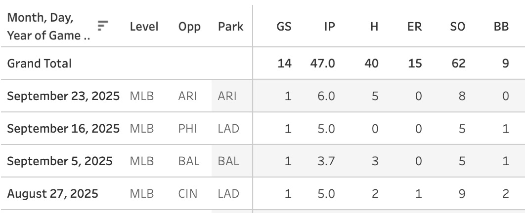 He worked up to 91 pitches in that final start. His final season numbers are insane.