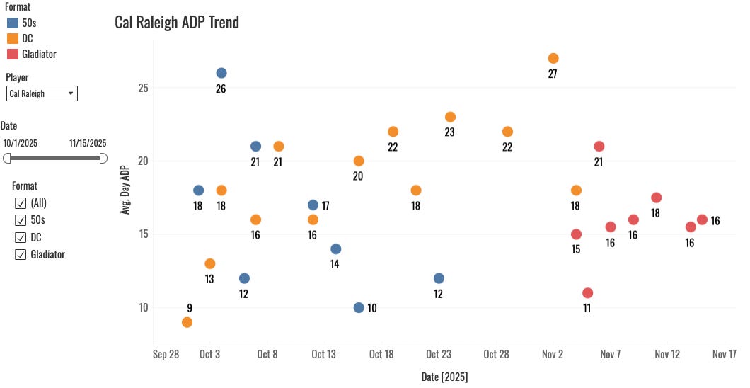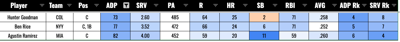 But I don’t have much to say about the top three options. Raleigh will be the first catcher taken in every single fantasy baseball draft this year. And that’s a buy-high that I wouldn’t do. If he hits 60 homers again, fine, I’ll lose. But I’m never ever ever going to buy into a catcher after a career season. They’re too volatile.