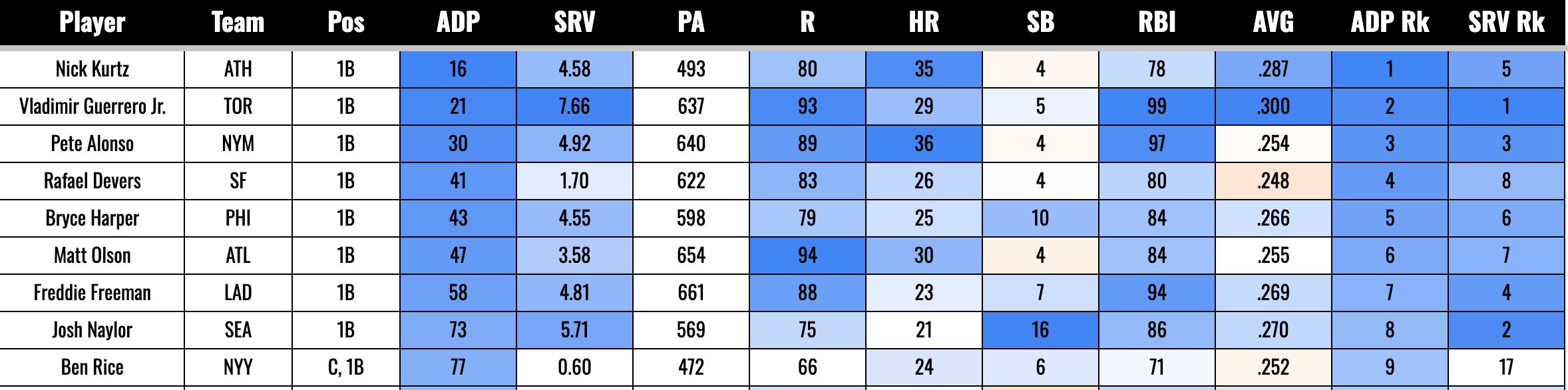 First base is the most “the same” position in the fantasy game over the last handful of years. Alonso, Devers, Harper, Olson, Freeman, Vlad. Those guys have consistently been near the top of the position. But that group of hitters is aging down the ADP board.