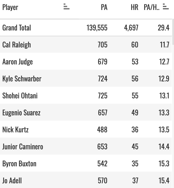 Kurtz was one of six hitters with a PA/HR rate under 14. He hit 36 homers in less than 500 PAs.