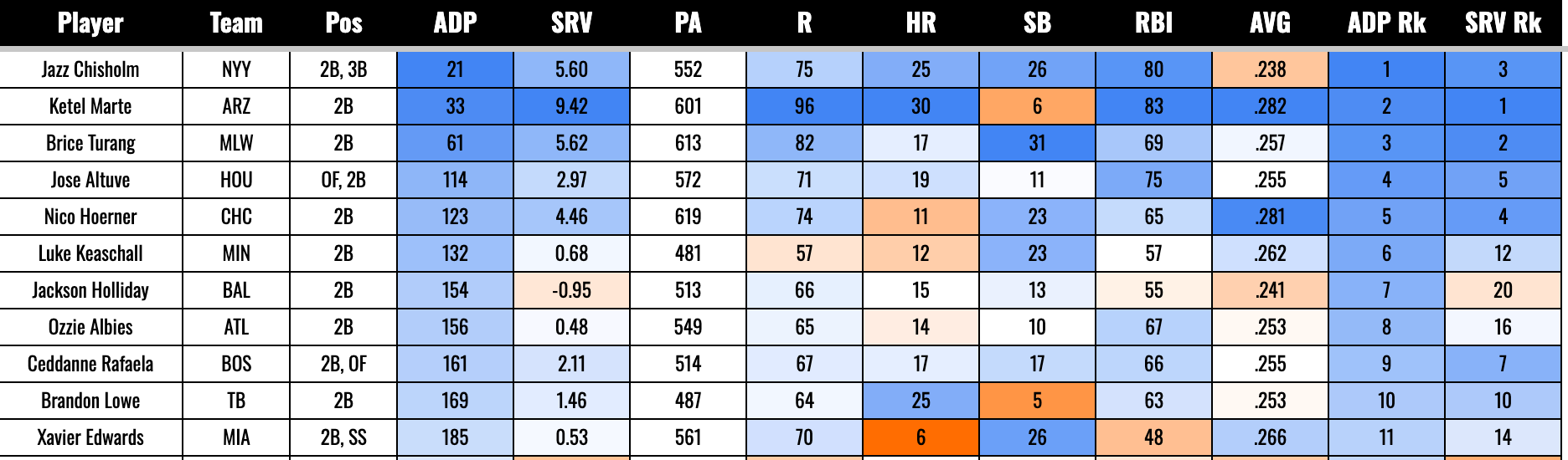 Here’s a look at little standard roto value cheat sheet I’ve cooked up. We’ll review the top 11 at the position in this screenshot: