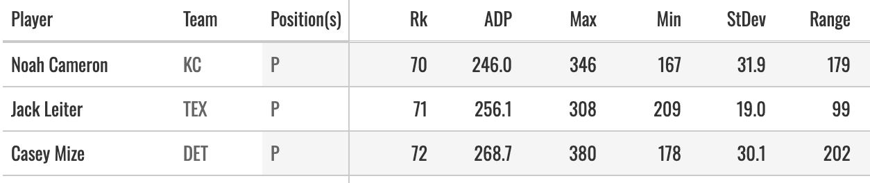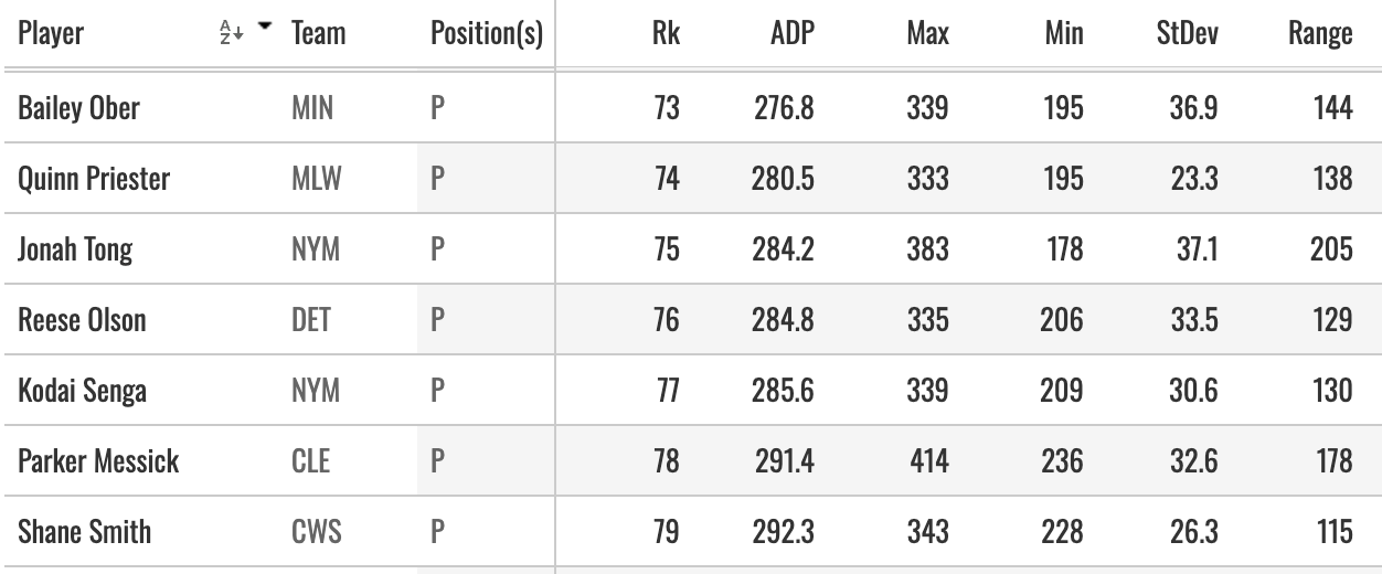 Part three took us through tier 14, 69 pitchers covered. So we pick it up there, and we’ll finish SPs out in this piece. I’m covering like 150 picks in ADP in here, and I will just be picking out the names of the most interest to me for commentary.