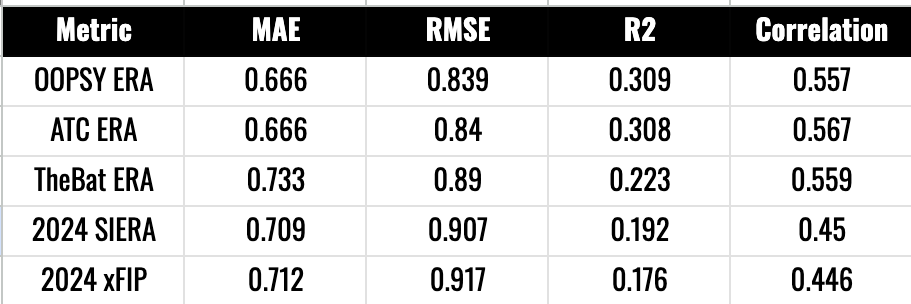 The Bat doesn’t do nearly as good a job at predicting ERA as ATC & OOPSY