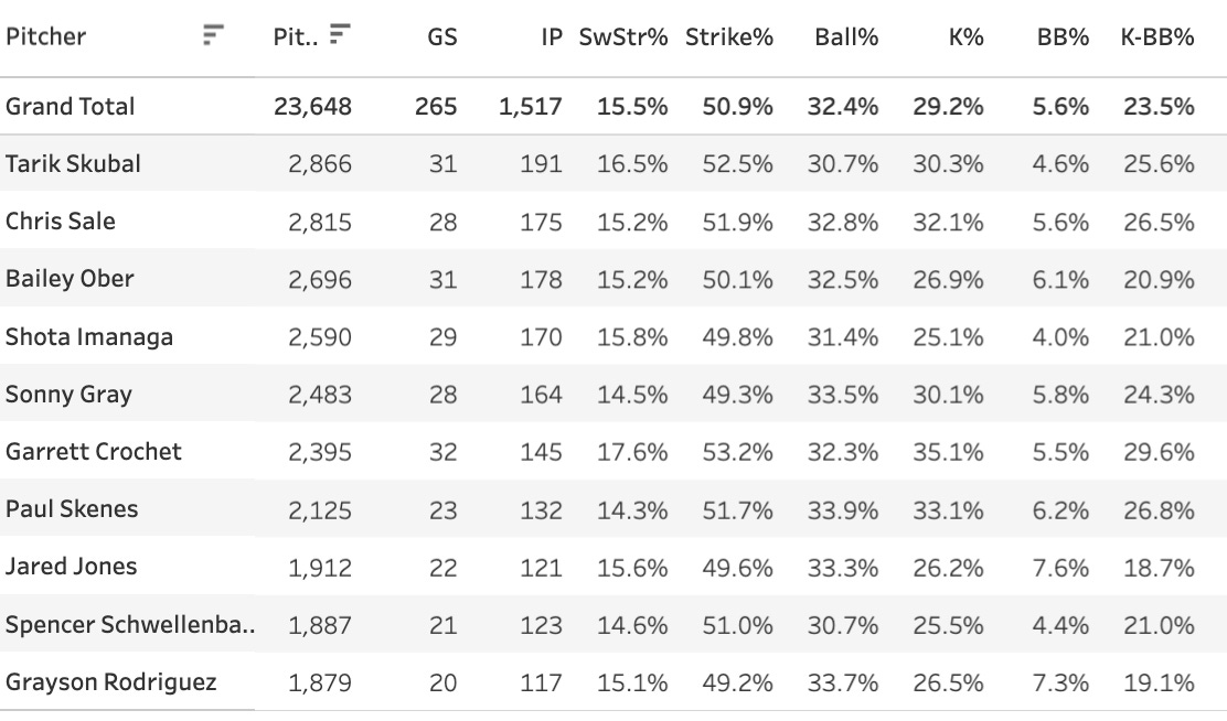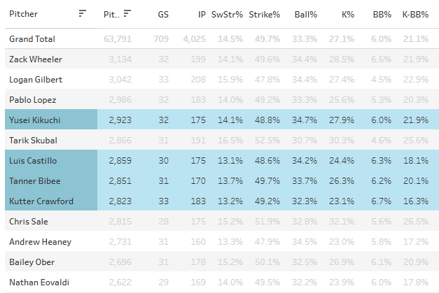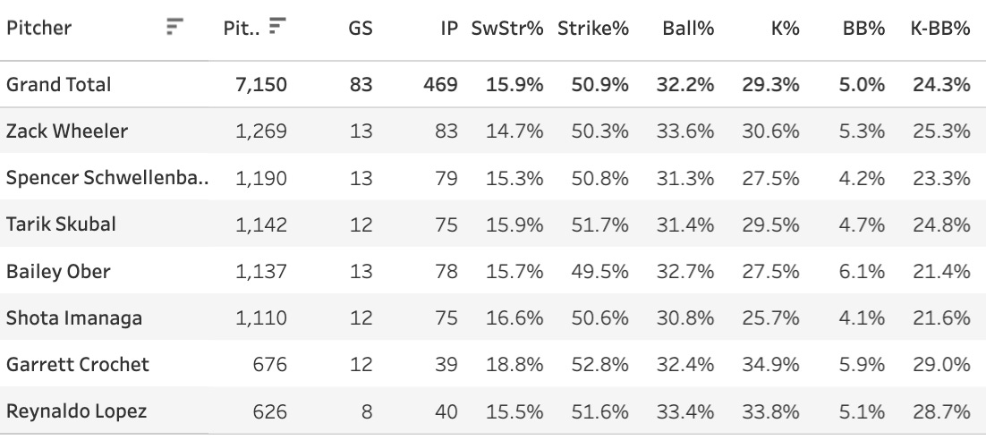 These are the pitchers that made at least 20 starts last year and qualified. It’s going to be largely a list of studs.