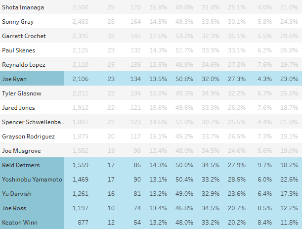 Joe Ryan: More validation for Ryan as a strong target. I love him for WHIP, and with some home run luck, he can post a competitive ERA as well. The one question about him is the health of the shoulder. He was shut down in August, so that’s a bit of a concern.