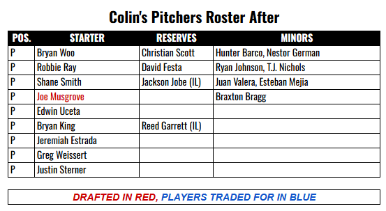 You have three starting pitchers who fit what you should be looking for: Bryan Woo, Robbie Ray, and Shane Smith. I don’t think David Festa is one of those guys, but at 25, I’d probably hold onto him for 2026 to find out. Christian Scott or Hunter Barco might be one of those guys, but I would look into finding a veteran arm who may be a little undervalued in 2026. Sonny Gray, Chris Bassitt, and Zac Gallen fit that mold.