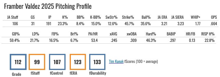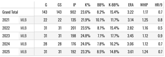 Valdez has been an ironman dating back to 2022. He’s made at least 28 starts and has logged at least 176 innings in each of the last four. That alone is worth quite a bit of money. But he’s done it with very solid ERAs as well.