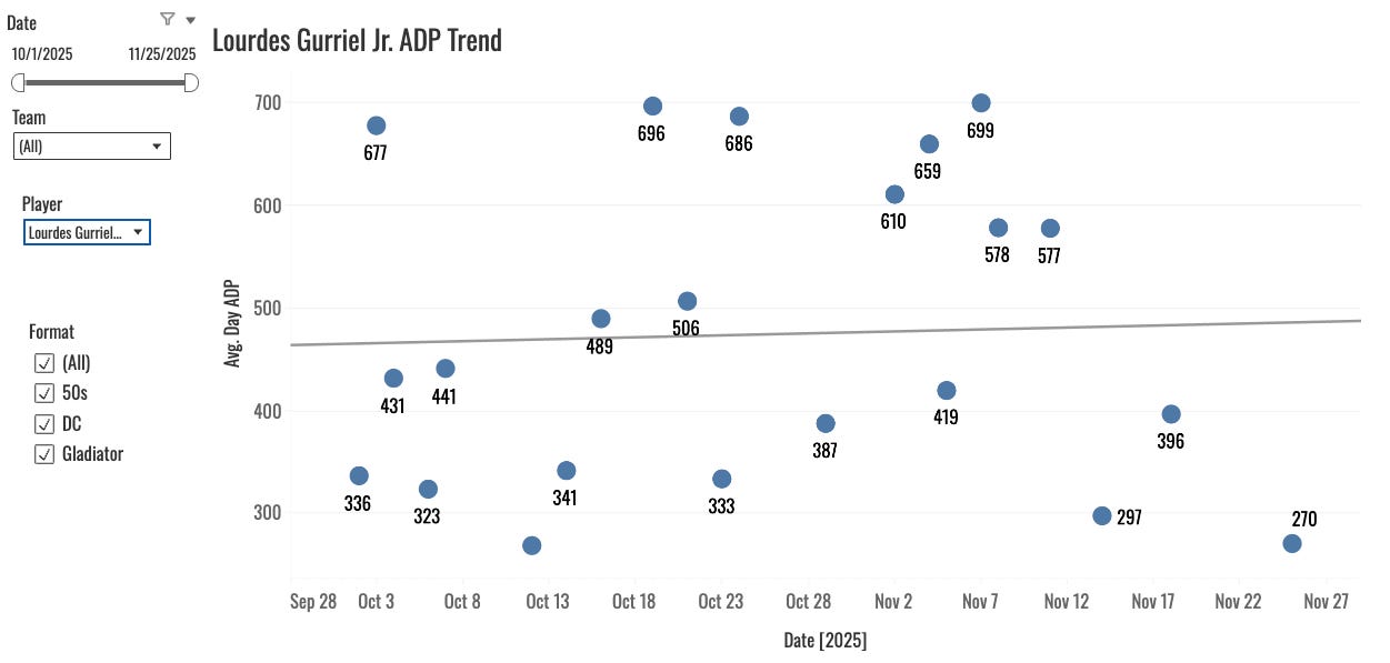 This Lourdes Gurriel thing is weird, and it shows a third option. Sometimes, you just get a drafter who isn’t paying attention. Somebody pulled on Lourdes at pick #270 the other day.