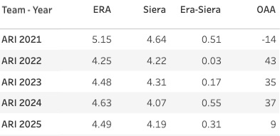 But it didn’t work every time! The Diamondbacks are here three times with great defense, and all three times they failed to beat their SIERA. That’s weird.