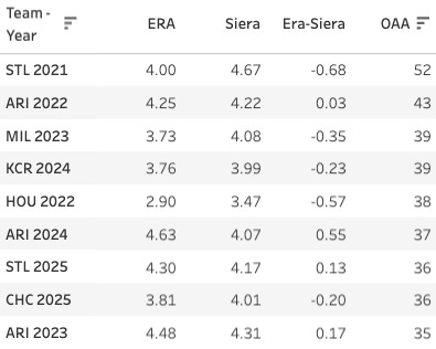 Nine teams in the last five years have gone for an OAA above 35. And four of them significantly crushed their SIERA.