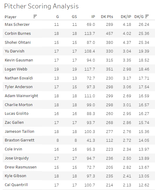 It’s worthwhile to say that Ohtani has been every bit as good as Scherzer and Burnes this year, so those three make the top three. I think the move would be to pick two of those, but probably Ohtani in there since he’s much cheaper.