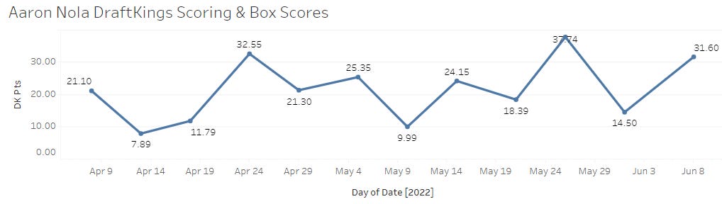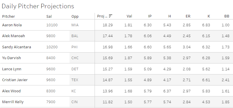I’m not going to do some in-depth analysis trying to parse between Nola and Alcantara. They face each other - so Nola has the matchup advantage, but Sandy has the advantage of just being better than Nola this year