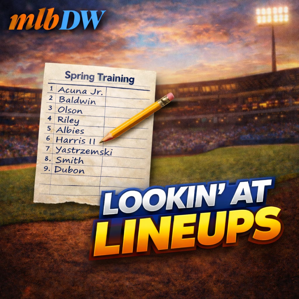 Carson Benge has hit 1st, 1st, 1st, 2nd, and 3rd in his starts. That won’t happen with Lindor/Soto healthy, but I do think he’s going to make the team as their right fielder.