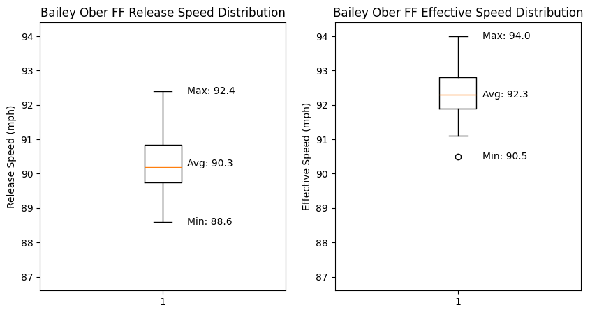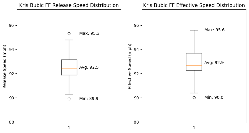It’s a lower-velo fastball, but it does come from the left side. Here’s this box and whisper plot that I made last year to show velocity distributions compared with the effective velo: