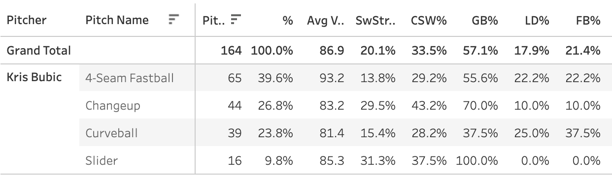 Kris Bubic's CH velo (23 pitches) UP 2.2mph to 83.0